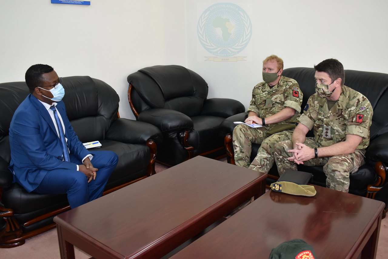 اجتمع مدير الايساف  العميد فايسا مع قائد فريق دعم السلام البريطاني في افريقيا في 24 مايو 2021 في مكتب سكرتارية الايساف في كارين، نيروبي.