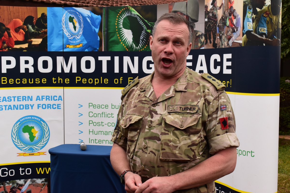 شكر رئيس الأركان المشتركة اللواء (الدكتور) تشارلز روداكابانا نيابة عن المدير الدكتور عبد الله عمر بوح، حكومة وشعب المملكة المتحدة لدعمهم الايساف على الصعيدين الفني والمالي منذ إنشائها في عام 2004. تحدث على المساهمات العديدة التي قدمتها المملكة المتحدة للايساف وخاصة في مجال بناء القدرات على مدار الخمسة عشر عامًا الماضية والتي ساعدت بدورها في تعزيز القدرة التشغيلية الكاملة التي حققتها الايساف في عام 2014.