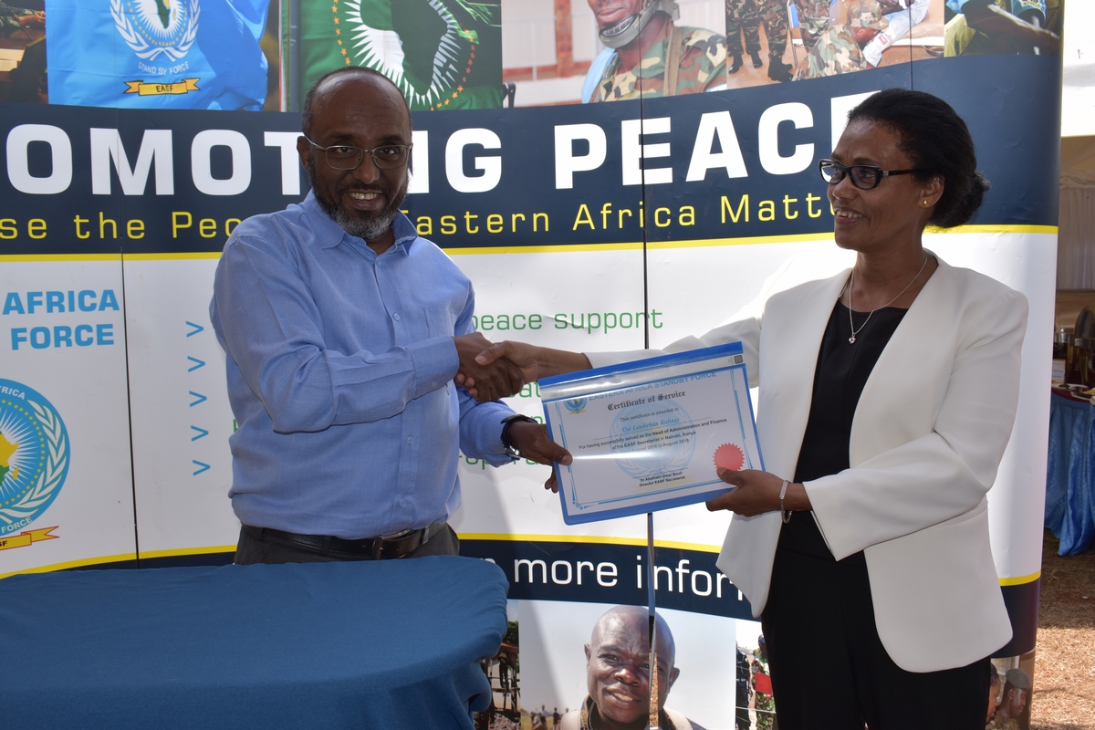 اقامت الايساف حفلة لتوديع أول رئيس لقسم عمليات السلام اللواء ألبرت كينداجور في الخامس من أغسطس 2019 في السكرتاية في كارين، نيروبي. في الوقت نفسه استقبلت المؤسسة العميد هنري إيسوكي من جمهورية أوغندا لتولي المهمة في القسم، يتم تناوب المناصب القيادية حسب جدول التناوب لتكون دورية بين الدول الاعضاء العشر في الايساف.