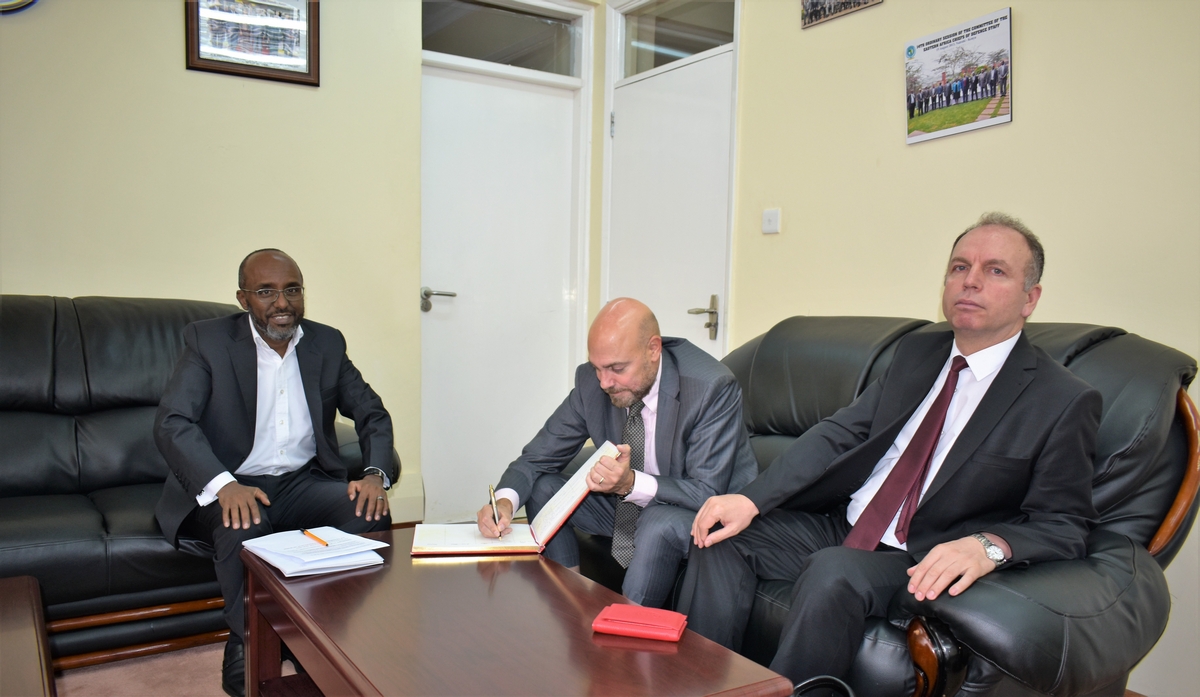 زار السفير التركي لدى كينيا سعادة السفير أحمد إلى مقر سكرتارية الايساف في نيروبي، كينيا يوم الاربعاء 22/مايو 2019. كان برفقة سعادة السفير الملحق العسكري في السفارة التركية اضافة إلى مدير الوكالة التركية للتعاون والتنسيق.