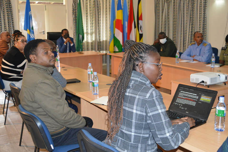 The planning team at Eastern Africa Standby Force presented its deployment plan of the observer mission in Kenya to the Director of EASF, Brig Gen. Gatachew Shiferaw Fayisa. The Head of Peace Operations Department, Brig Gen Kabisa Domitien and Head of Administration and Finance Ms Lina Peggy Hoareau and other EASF staff also attended the briefing.