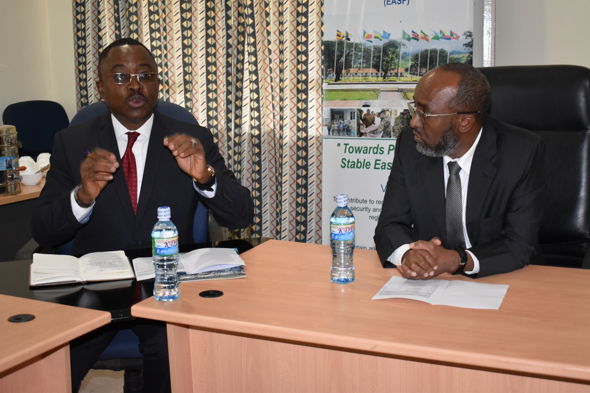 The Director of EASF Dr. Abdillahi Omar Bouh applauded the visit terming it as significant for EASF since this partnership would provide an avenue to address the challenges that the Standby Force faces as a regional organization. He informed the delegates that EASF is on the right track with the potential to deploy in the region and beyond when crisis arise at any time. Dr. Bouh reinstated that all the necessary processes of employment and sustainment of the force in an AU/EASF mandated mission, with additional capability of relieving the deployed force in the mandated time lines, are in place.