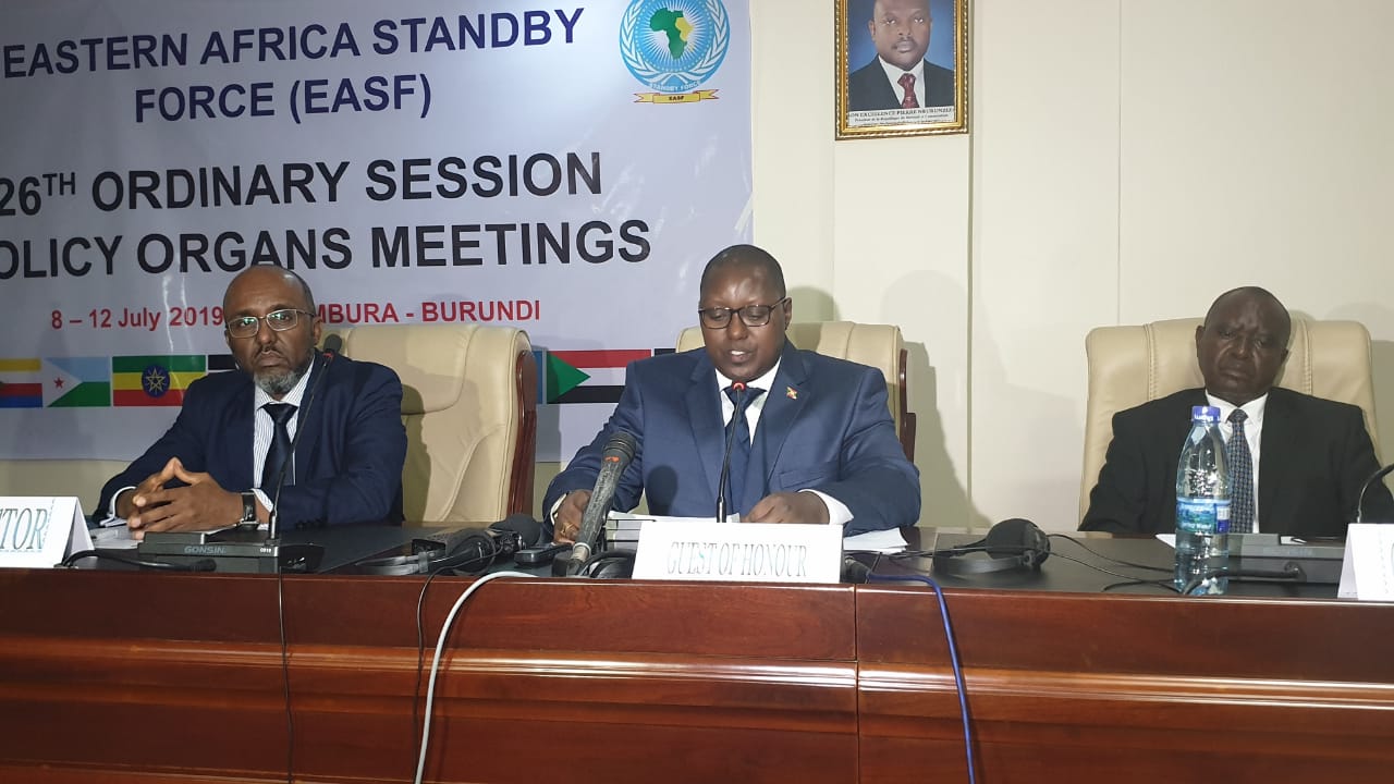 The meeting, which forms part of the 26th Ordinary Session of the EASF Policy Organs, was graced by the Guest of Honour H.E. Mr. Emmanuel Ntahomvukiye the Minister of Burundi National Defence and War Veterans.