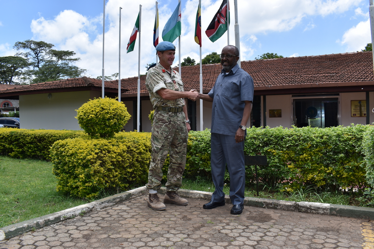 A military delegation from the United Kingdom paid a courtesy call on EASF's Director Dr. Abdillahi Omar Bouh at the Secretariat in Karen, Nairobi, on Friday 28th February 2020.
