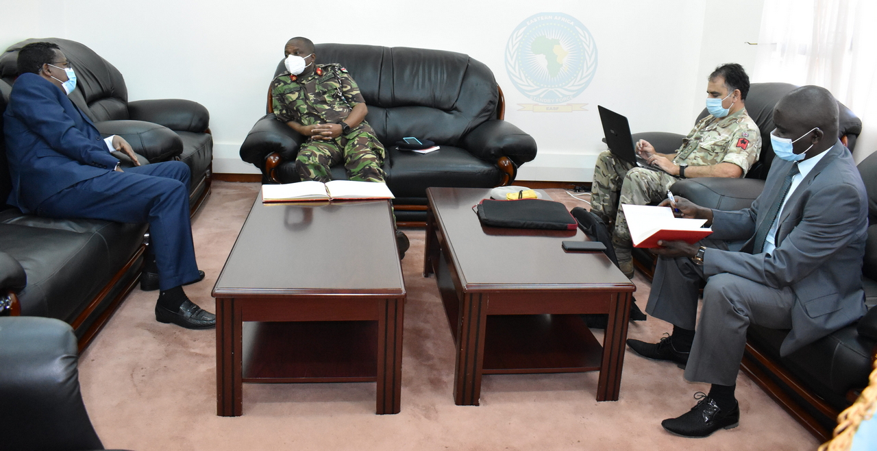 Le Directeur de l'EASF, le Brigadier-Général Getachew Shiferaw Fayisa, a tenu une réunion avec le Directeur de Centre International de Formation au Soutien de la Paix (IPSTC), le Brigadier C. L. Mwazighe, au Secrétariat à Karen, Nairobi, le 28 Janvier 2021.