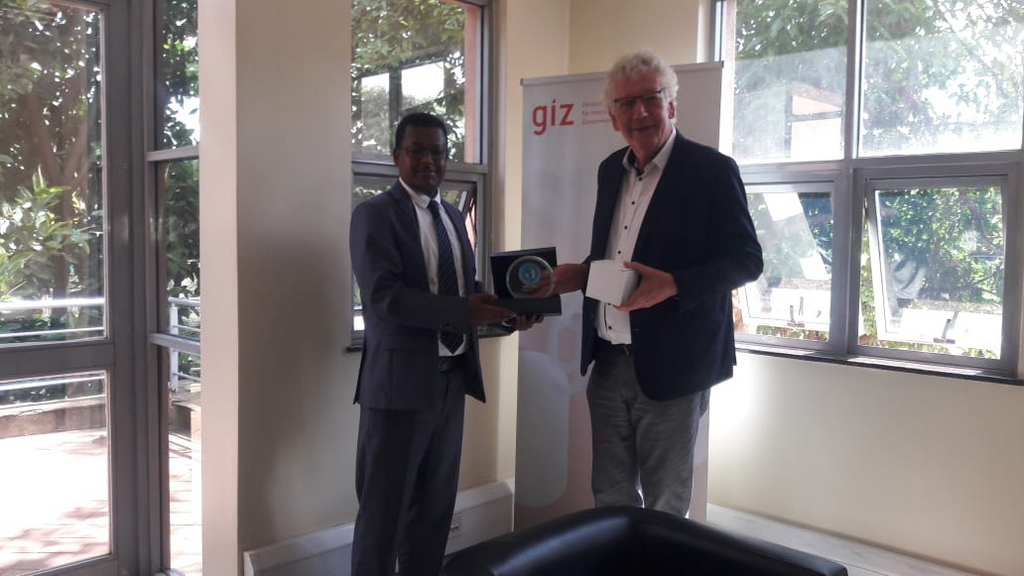 Le Directeur du Secrétariat de l'EASF, le Brigadier Général Getachew Shiferaw Fayisa, a rendu une visite de courtoisie au Directeur National de la GIZ, M. Bodo Immink, au siège de la GIZ à Riverside Drive, Nairobi, le 10 Novembre 2021.