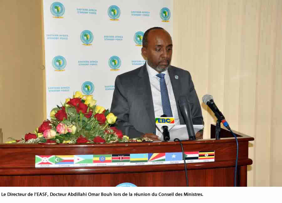 Le Docteur Abdillahi Bouh, Directeur du Secrétariat de l'EASF a remercié les Ministres de Défense et de Sécurité d'avoir accordé son orientation à l'EASF. Il a en outre exprimé sa confiance que FTX 2017 contribuera largement à assurer la région Afrique Orientale et le continent en général, disposé d'un instrument fiable pour projeter les capacités politiques, et de combat pour la paix et la sécurité.