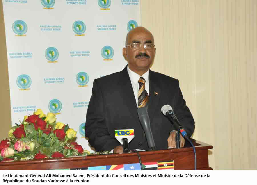 Le Lieutenant-Général Ali Mohamed Salem, Président du Conseil des Ministres et Ministre de la Défense de la République du Soudan, a exprimé ses préoccupations concernant les menaces de sécurité qui prévalaient actuellement dans la région Afrique de l'Est, et concernant la nécessité de faire face constamment aux attaques terroristes, aux guerres civiles, aux attaques internes et aux nombreuses autres menaces. "Le sentiment de manque de paix n'est pas un environnement confortable dans lequel nous voulons opérer", a-t-il déclaré. Le Général Salem a encouragé l’EASF à travailler en partenariat avec d'autres organisations régionales, afin de renforcer la responsabilité collective et les mécanismes de réponse qui peuvent efficacement faire face aux menaces de sécurité.