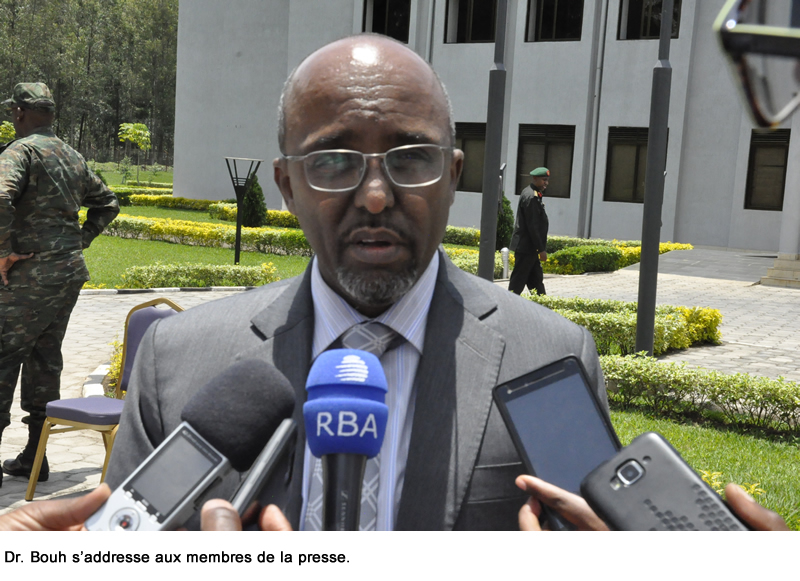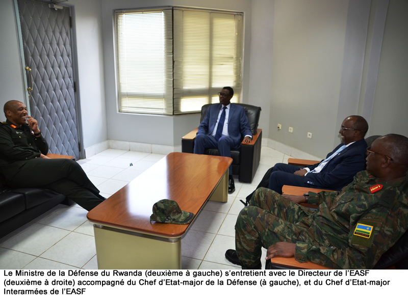 Au Quartier Général  des Forces de Défense du Rwanda (FDR) à Kimuhurura, Kigali, Dr Bouh a été accueilli par le Ministre de la Défense du Rwanda, SEM le Général James Kabarebe, accompagné du Chef d'Etat-major de la Défense, le Général Patrick Nyamvumba. La visite visait à mettre à jour le leadership du Ministère de la Défense et de FDR sur les progrès de la préparation de l'Exercice d’Entrainement sur Terrain (FTX), qui aura lieu en République du Soudan en Novembre 2017. Le directeur a expliqué aux dirigeants de la défense comment le FTX 2017 a été conçu pour en faire un test rigoureux de la disposition de l'EASF à se déployer en situation de crise et à conclure avec succès une mission de maintien de la paix.