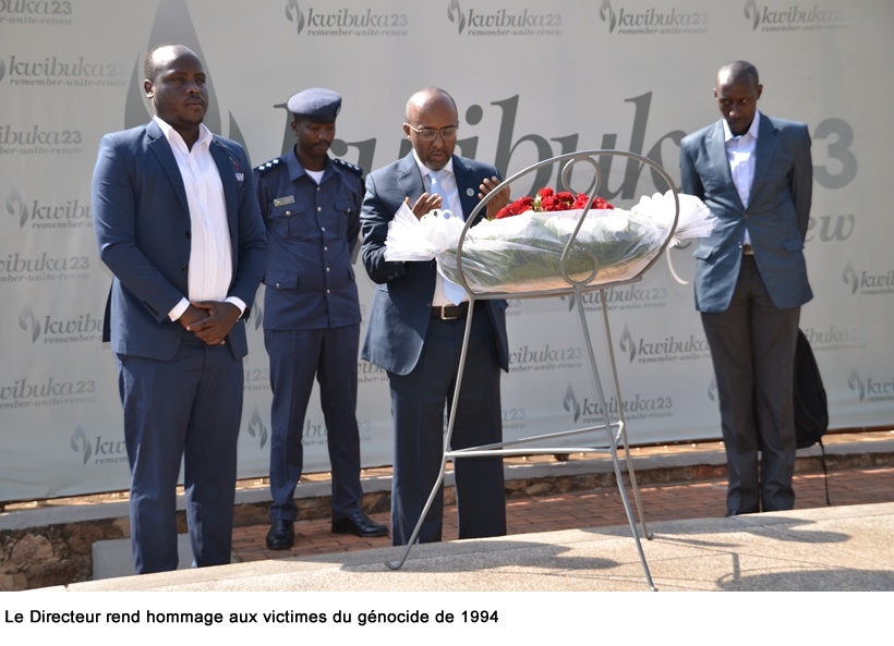 D'autres visites sur le programme du Directeur ont inclus l'Académie de Paix de Rwanda, l'Académie Militaire de Rwanda et le Centre Commémoratif de Génocide de Kigali, où il a rendu des respects aux victimes du génocide 1994.