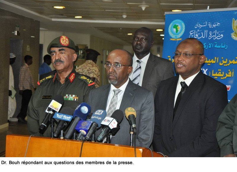 Le Lieutenant-Général Salem a rassuré la réunion que le Soudan était bien préparé à soutenir l'exercice de toute façon possible. Dr. Bouh a remercié le Gouvernement de la République du Soudan pour avoir fourni aux équipes impliquées, un environnement propice, ainsi que de vastes ressources pendant toute la planification de l’exercice FTX 2017 dans le pays.