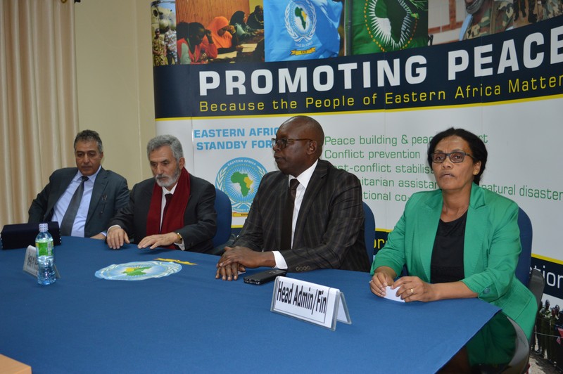 Une délégation d'officiers de la capacité régionale nord-africaine (NARC) conduite par son secrétaire exécutif, le général de brigade (retraité) Ahmed Hamaida Altajouri, a visité le secrétariat de l'EASF à Karen, Nairobi, le 10 avril 2018.