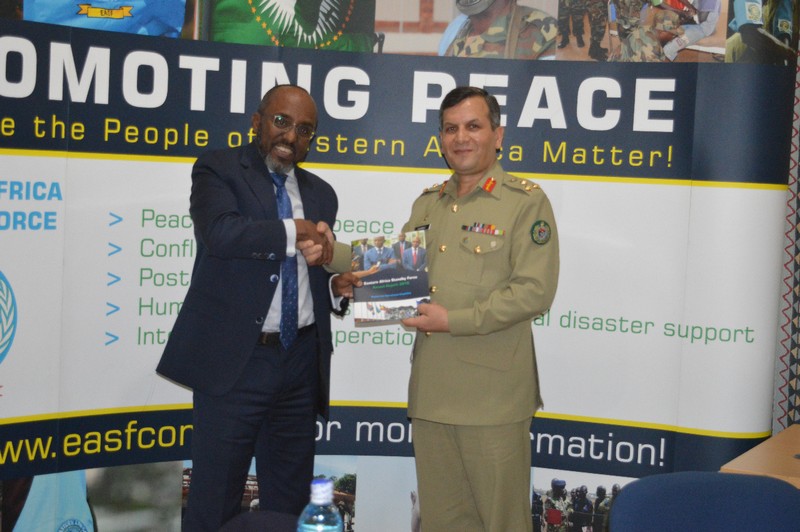 Recevant les invités au Secrétariat, le Directeur de l'EASF Dr. Abdillahi Omar Bouh a exprimé sa gratitude au nom de toute la fraternité de l'EASF à l'Université de la Défense et au Gouvernement du Pakistan pour le vif intérêt manifesté pour les opérations de la Force en attente. Le Chef de la Délégation, le Brigadier Shamraiz, a informé le Dr Bouh des structures et du fonctionnement des forces navales de son pays; Les discussions qui ont suivi sont précieuses pour l'EASF à un moment où le gardien de la paix est sur le point de renforcer sa cellule maritime. D'autres séances d'information ont été organisées par le personnel de l'EASF au cours de la journée.